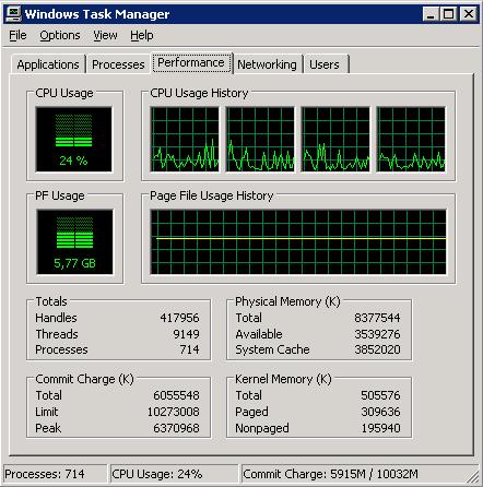 Aşağıdaki resimde tek bir Quad-Core processor ile çalışan Windows Server 2008 den alınmış task manager görüntüsünü yer alıyor.